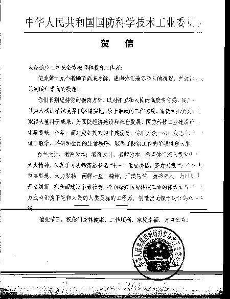 您的位置: 首頁 >新聞中心>南航要聞>詳細(xì)內(nèi)容 南航要聞 國防科工委發(fā)來賀信祝南航全體教師節(jié)日快樂 來源:啟航 作者:羅暉 攝影: 發(fā)布時(shí)間:2003-09-08 瀏覽次數(shù): 次 【字體:小 大】 啟航網(wǎng)訊 第十九個(gè)教師節(jié)到來前夕 ,中華人民共和國國防科學(xué)技術(shù)工業(yè)委員會向南航全體教師發(fā)來賀信,祝大家節(jié)日快樂,身體健康,工作順利,家庭幸福,萬事如意!(編輯:羅暉) 【打印正文】