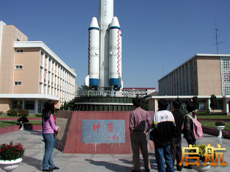 不少同學跑到學院中心廣場,瞻仰豎立在那里的“長征”火箭模型,遐想銘志,祝愿中華民族偉大復興,祖國更加繁榮昌盛。