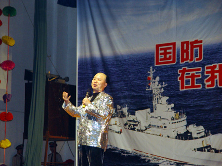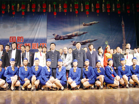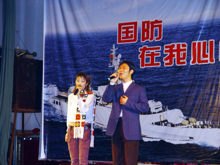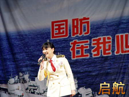 晚會由學院與海政文工團聯袂演出,節目豐富,精彩紛呈,座無虛席的大禮堂內,笑聲朗朗,掌聲陣陣。一首《白浪花》,一個小品《水兵》一個《向往藍天》……一支支歌,一個個舞蹈,把人們的向往帶到了藍色的海洋,帶到了遼闊的天空,把軍人情學子情融合在一起,把軍隊和學校連接在一起。