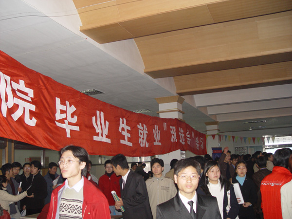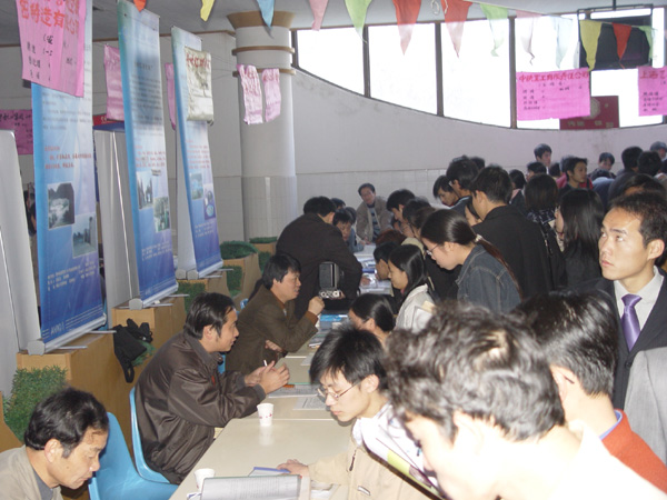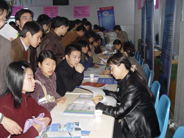 8:30,應聘學生陸續入場。頓時,人如潮,聲如涌,設為招聘現場的二樓、三樓大廳立時爆滿。咨詢、答辯、投檔、簽約,令各用人單位招聘人員應接不暇;猶如進入了超市,你挑我選,各得其所。記者隨意采訪了幾家用人單位,對我院畢業生的質量如何?所答都說是不錯或說滿意。江西大型企業南昌鋼鐵有限公司郭處長說,我們每年都來昌航招聘人才,是因為我們覺得昌航的學生有很多優秀的,我們招聘過去的畢業生在工作中都很不錯。所以這次又來了。遠道而來的陜西航空宏峰精密機械工具公司的徐廠長說我們之所以這么老遠地跑來,一是我們廠的發展需要各種技術人才,二是昌航培養出來的學生基礎理論扎實、動手能力強、素質好,在航空系統是出了名的,我們是慕名而來!