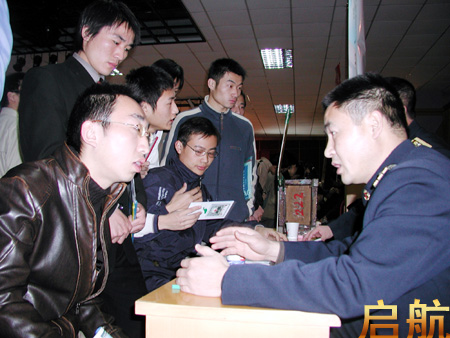 據海軍干部部的張紅蕾少校介紹說,這是海軍第一次組團來昌航舉行招聘會,以前都是分散進行。南昌地區招聘會之所以把點設在航院,一是南昌航院是海軍的依托單位,專業的設置與海軍的人才需求相吻合;二是學院從領導到學生對部隊很有感情,對我們的工作很支持。這一點,上一次簽約就感受到了。