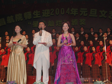 您的位置: 首頁 >新聞中心>南航要聞>詳細內容 南航要聞 辭舊迎新,南航舉辦迎2004年元旦文藝晚會 來源:啟航 作者:豐凱 攝影: 發布時間:2004-01-02 瀏覽次數: 次 【字體:小 大】 啟航網訊 12月30日,南航舉辦南航師生迎2004年元旦暨“星光燦爛”頒獎文藝晚會。(編輯:羅暉,攝影:豐凱) 【打印正文】