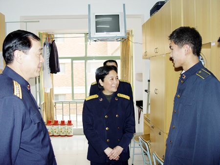 在224寢室,徐少將問一位江西籍的同學(xué):“其他同學(xué)對(duì)我們國(guó)防生有什么看法呢?”這位同學(xué)自豪地答道:“當(dāng)然是羨慕我們這支隊(duì)伍!” 徐少將饒有興致地又接著問道:“那你們自己又是怎么看的呢?” 學(xué)生答道:“作為國(guó)防生,我們感到很自豪,也感到有壓力。”“說得好!”徐少將高興地點(diǎn)點(diǎn)頭說,“有壓力,才會(huì)有動(dòng)力。”
