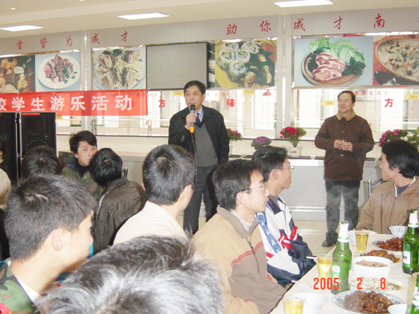 您的位置: 首頁 >新聞中心>南航要聞>詳細內(nèi)容 南航要聞 2005年春節(jié)校領(lǐng)導(dǎo)與留校學(xué)生聯(lián)歡 來源:學(xué)工處 作者:李淞 攝影: 發(fā)布時間:2005-02-09 瀏覽次數(shù): 次 【字體:小 大】 啟航網(wǎng)訊 2005年2月8日下午,南昌航院在前湖新校區(qū),舉行“歡歡喜喜過新年”寒假留校學(xué)生游樂活動和春節(jié)聚餐活動,劉高航校長、黃親國校助以及學(xué)生政工干部們和后勤集團領(lǐng)導(dǎo)等參加活動,向留校學(xué)生致以節(jié)日的問候?。ň庉嫞毫_暉) 【打印正文】