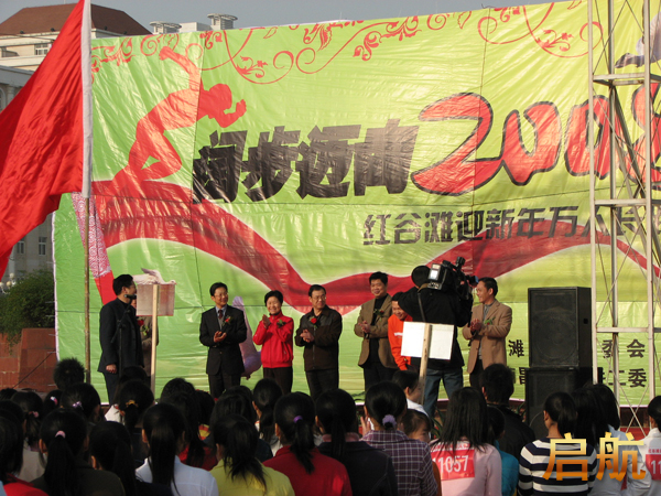 啟航網訊 12月30日上午9時,“闊步邁向2008——紅谷灘迎新年萬人長跑日”活動開幕式在南昌世紀廣場舉行,我校300名學生參加了開幕式和長跑活動。本次活動旨在推動全民健身,迎接2008年北京奧運會。