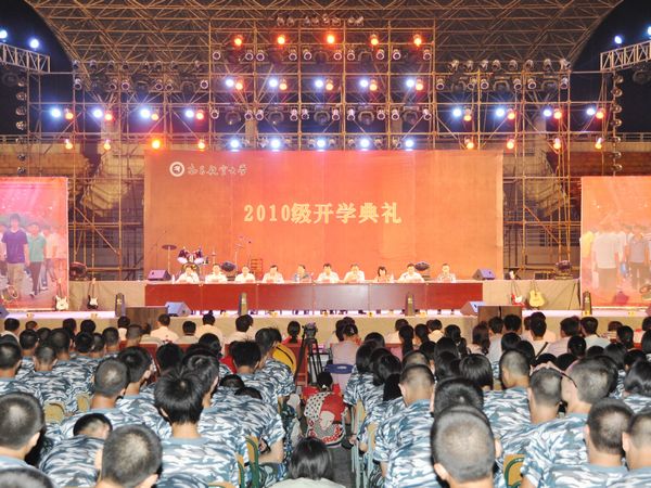 啟航網(wǎng)訊 9月19日晚7時,五彩的燈光,歡樂的節(jié)奏,印著一張張新生笑臉的彩色背景畫幕,把田徑運動場裝點得絢爛多姿,我校2010級新生開學典禮在這里隆重舉行。中國科學院院士、學校學術(shù)委員會主任曹春曉,校領(lǐng)導余歡、黃士安、劉志和、黎明、王玉芝,海軍選培辦主任羅紅明等領(lǐng)導與6054名新生歡聚一堂,共同慶祝這一美好的時刻,開學典禮由學工處處長黃柯主持。學校黨政辦、組織部、宣傳部、教務處、計劃財務處、招生就業(yè)處、后勤管理處、保衛(wèi)處、后勤集團等職能部門領(lǐng)導和各學院黨政領(lǐng)導、全體學生干部、軍訓教官及2010級全體學生等出席了開學典禮。