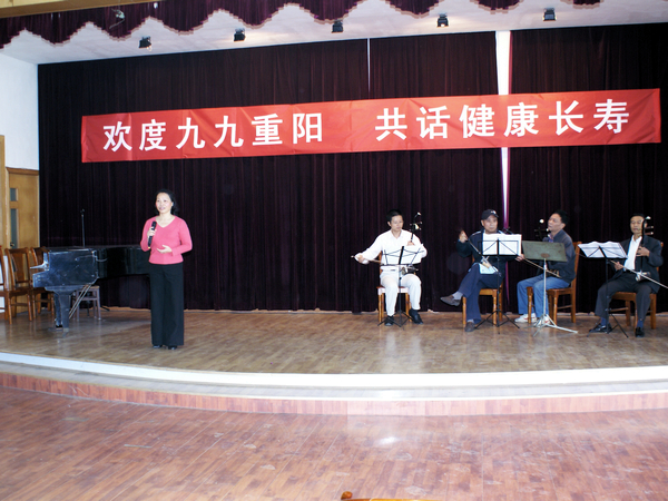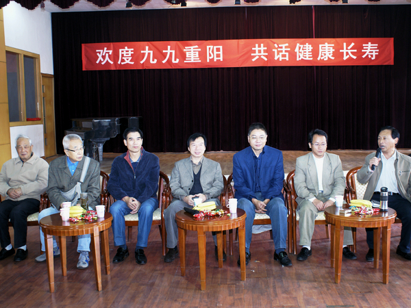 座談會上,離退休老領導、老同志、老教師代表暢所欲言,紛紛表達了對學校領導給予老年人真切關懷的感激之情,并分享了各自晚年生活的心得體會。離休干部趙聲說,老年人應以健康為中心,瀟灑生活,廣交朋友。老年人要經?!靶σ恍Α薄ⅰ疤惶?。俗話說,笑一笑十年少。老年人在晚年生活中應保持愉快心情,笑口常開,這樣才能少得病。如果每天能堅持做保健操,或者扭秧歌、跳跳舞,對老年人鍛煉身體,增強抗病能力,都有很大幫助。他還即興為大家演唱了歌曲《為了誰》,其積極向上的精神狀態使大家深受感染。離休干部盧廣發祝愿在場的老年人健康九九、幸福九九!他家中有身患重病的老伴,但是在相互扶持、相互鼓勵中盧老師與愛人依舊保持著良好的心態,他形容自己:“八十歲的年齡、五十歲的身體、三十歲的心態”,“要爭取活到一百歲!”九十二歲高齡的離休干部張井夫精神矍鑠,他用一首《八路軍軍歌》表達了自己激動的心情,那鏗鏘有力卻略帶沙啞的歌聲激勵斗志,催人奮進,感動著在場的每一個人。