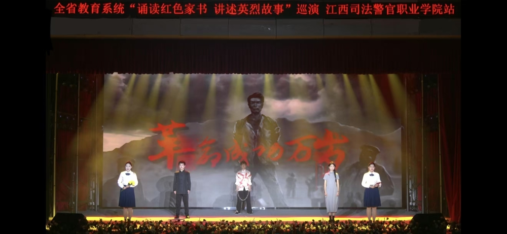 啟航網訊 11月30日,由中共江西省委教育工委、江西省教育廳主辦的江西省高校第49場“誦讀紅色家書 講述英烈故事”巡演活動,在江西司法警官職業學院舉行,我校原創作品《青春如火 信仰如光》受邀參與巡演。