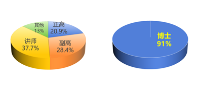 學院現有教職工215人,其中,教學科研崗專任教師198人,具有高級職稱人員106人(正高45人,副高61人),博士學位教師占比91%。