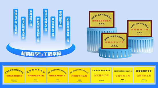 學院現有金屬材料工程、焊接技術與工程、材料成型及控制工程、高分子材料與工程、增材制造工程、電子封裝技術、復合材料與工程、無機非金屬材料工程8個本科專業。其中金屬材料工程和材料成型及控制工程為國家級特色專業、江西省首批品牌專業,金屬材料工程和焊接技術與工程分別為江西省優勢專業。此外,金屬材料工程、材料成型及控制工程和焊接技術與工程均為教育部“卓越工程師”培養計劃試點專業,入選國家級一流本科專業建設點,且通過了教育部工程教育專業認證。