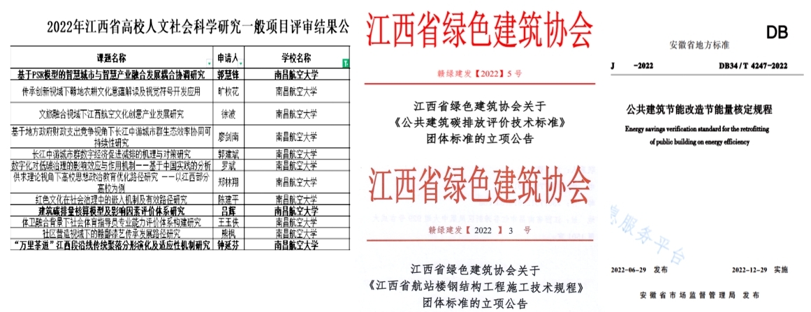 目前學院設有7個校級科研機構,包括南昌航空大學建筑碳中和研究中心、BIM研究所、智慧建造研究中心、隧道及地下工程研究所、交通工程研究所、結構工程研究所、建筑與城鄉規劃研究所。在科研方面,學院教師成果顯著,近5年來,榮獲國家自然科學基金項目15項,江西省社科基金項目20余項,縱橫向科研經費累計超過2700萬元;于中外核心學術期刊發表高水平學術論文100余篇,其中SCI、EI收錄56篇;出版專著及教材12部,獲國家專利62項;撰寫對策報告8篇,并獲江西省委、省政府主要領導批示。