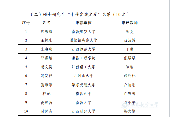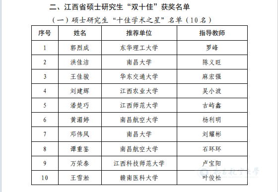 啟航網(wǎng)訊 近日,江西省教育廳公布2025年江西省研究生“雙十佳”評(píng)選結(jié)果,我校3名研究生獲“十佳學(xué)術(shù)之星”“十佳實(shí)踐之星”榮譽(yù)稱號(hào)。