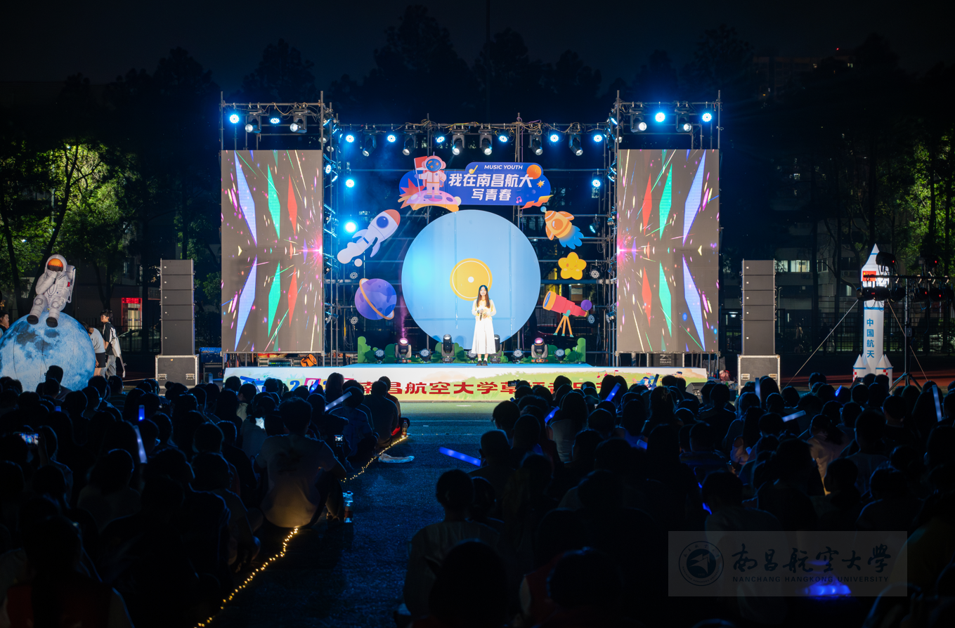 晚風漸濃,燈光愈發絢爛,二十余首風格各異的歌曲輪番登場,為現場帶來沉浸式視聽體驗。舞臺上,歌手們以真摯情感傳遞昌航學子的夢想與追求;舞臺下,熒光棒匯成流動的星河,師生們跟著旋律輕聲和唱,在音樂與溫情中,沉浸式感受校慶的濃厚氛圍。