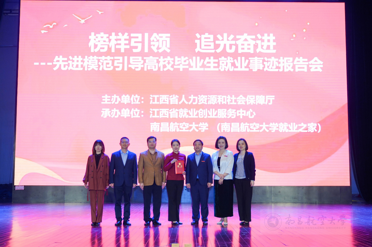 啟航網訊 10月30日,由省人社廳主辦、省就業中心與南昌航空大學共同承辦的“榜樣引領·追光奮進——先進模范引導高校畢業生就業”事跡報告會在大學生活動中心禮堂舉行。省就業中心黨委書記尹建明出席并致辭,學校黨委常委、副校長陳玉華為先進模范頒發就業導師聘書。省委辦公廳(省功勛辦)、省教育廳相關部門負責人,以及中航工業洪都公司、東航江西分公司、江西兆馳半導體有限公司、海康威視江西業務中心等企業代表應邀觀摩,各學院黨委副書記、就業干事與近950名畢業生共同聆聽了事跡報告。