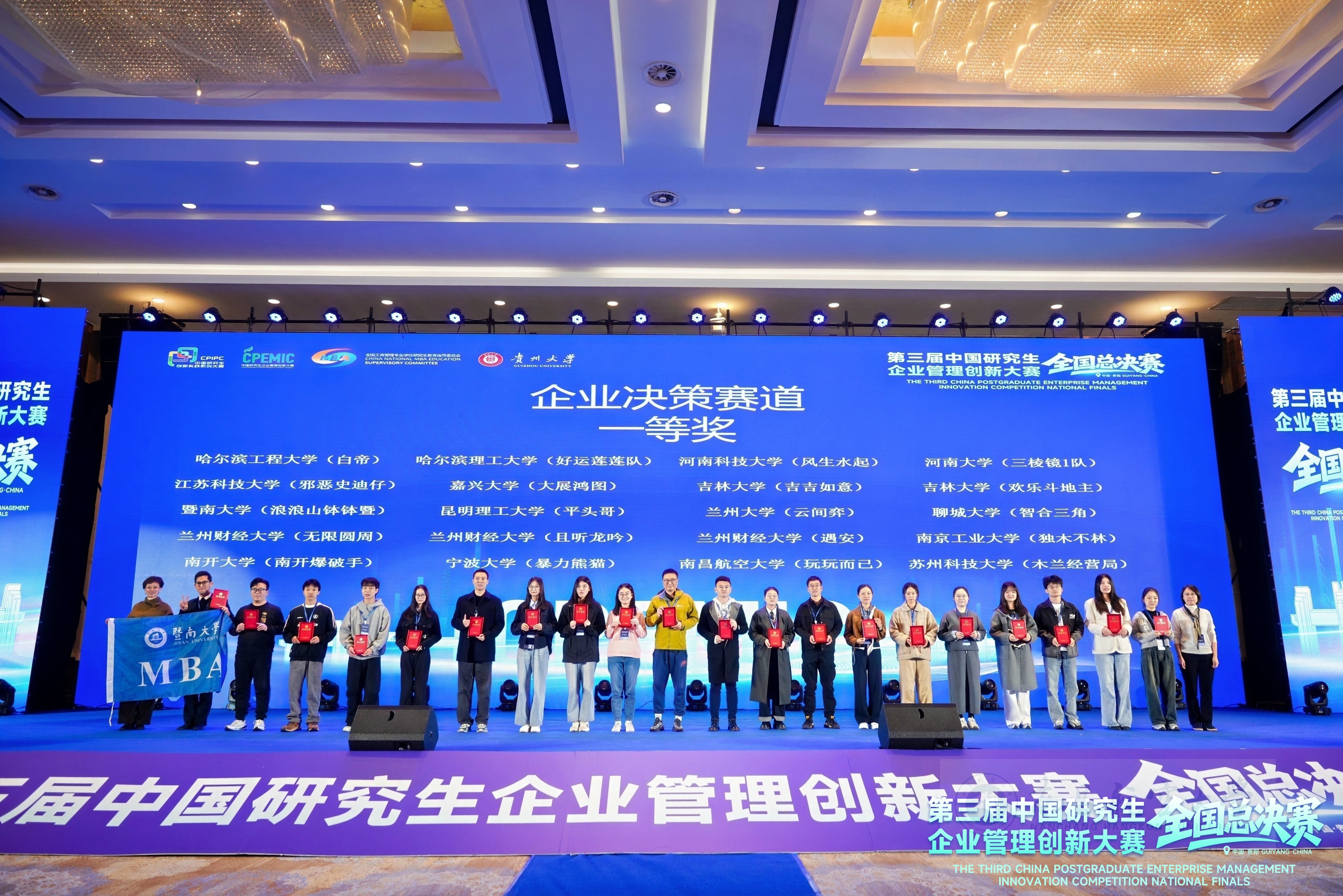 啟航網訊 11月9日,第三屆中國研究生企業管理創新大賽全國總決賽在貴州大學圓滿落幕,經過兩天的激烈角逐,我校經濟管理學院吳桂平老師和文法學院李文川老師共同指導的研究生參賽團隊從來自全國150所高校的411支決賽隊伍中脫穎而出,榮獲企業決策賽道一等獎,實現了我校在該賽事最高獎項上的突破。