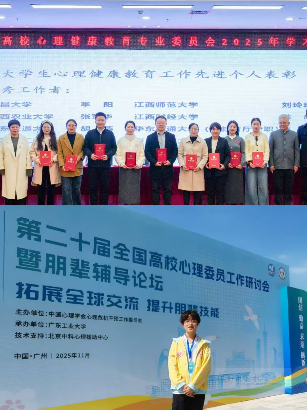江西省“大學(xué)生心理健康教育工作先進(jìn)個人”面向全省高校心理健康教育工作者展開評選,主要從教育教學(xué)、咨詢服務(wù)、危機(jī)干預(yù)、活動組織及科研等維度進(jìn)行綜合考評;“全國百名心理委員風(fēng)采展”則面向全國高校心理委員群體,側(cè)重考察班級心理委員在信息收集、朋輩輔導(dǎo)、活動組織和預(yù)警轉(zhuǎn)介等方面的實際表現(xiàn)與成效。此次師生獲獎,是我校構(gòu)建“全員育人、全過程育人、全方位育人”心理健康教育工作格局的具體體現(xiàn),學(xué)校將持續(xù)加強(qiáng)心理健康教育工作隊伍建設(shè),完善心理健康教育服務(wù)體系,培育學(xué)生積極心理品質(zhì),為落實立德樹人根本任務(wù)、培養(yǎng)德智體美勞全面發(fā)展的時代新人提供堅實保障。