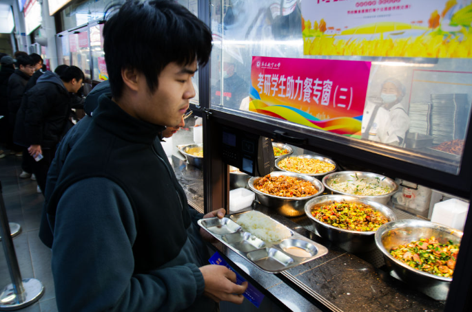 據悉,為鼓勵考研學子,學校為2904名學生免費發放了2張餐券。學校資產經營管理有限公司提前謀劃、周密布置,將工作做實做細,在一食堂、二食堂所有檔口設置了“考研學生助力餐專窗”,優先為考生提供用餐服務。同時,食堂提前向考生公布菜譜,三葷一素的任意組合,為同學們提供了更多選擇。