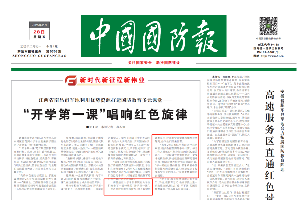《中國(guó)國(guó)防報(bào)》頭版頭條報(bào)道:
