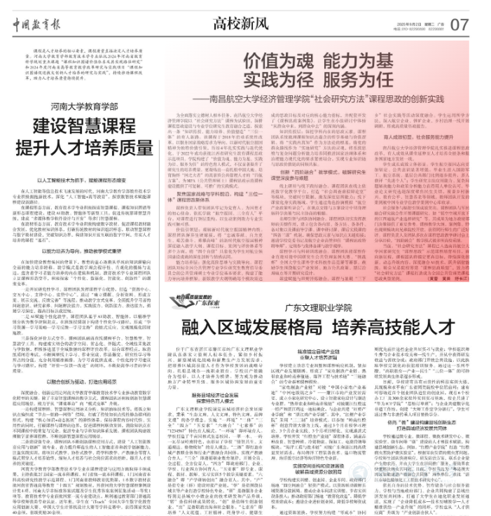 您的位置: 首頁 >新聞中心>媒體南航>詳細內容 媒體南航 【中國教育報】價值為魂 能力為基 實踐為徑 服務為任 來源: 作者: 攝影: 發布時間:2025-09-03 瀏覽次數: 次 【字體:小 大】 啟航網訊 中國教育報 07版高校新風以“價值為魂 能力為基 實踐為徑 服務為任——南昌航空大學經濟管理學院“社會研究方法”課程思政的創新實踐”報道我校。媒體鏈接:https://share.app3.jyb.cn/paper_d/1b642182d4c7f17f9c4ad52736a8757c?from=VjZDc29lWmRlREZnUWRtcXVVam1CR1FZalVWa1M0V284ZDRqd0VDUVZZd0hEY3dNaExKbmVETjhjNUluVGtJWg== 責任編輯:李夢遙 相關內容 【打印正文】