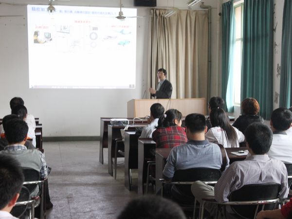 報告中,吳教授以2000多年前中國古代的青銅鑄造技術為開端,向與會師生介紹了先進制造加工技術的演變進程、研究方法和研究現狀等情況,并重點講述了磨削加工和研削加工的加工過程以及超聲波和磁場在超精密加工過程中的應用。吳教授指出,當前精密和超精密加工精度從微米到亞微米,乃至納米,在汽車、家電、IT電子信息高技術領域和軍用、民用工業有廣泛應用。同時,精密和超精密加工技術的發展也促進了機械、模具、液壓、電子、半導體、光學、傳感器和測量技術及金屬加工工業的發展。吳教授的報告生動精彩,使與會師生對精密和超精密加工方面的知識有了更新更全面的認識,同時也對吳教授的研究方法和研究成果有了深入的了解。