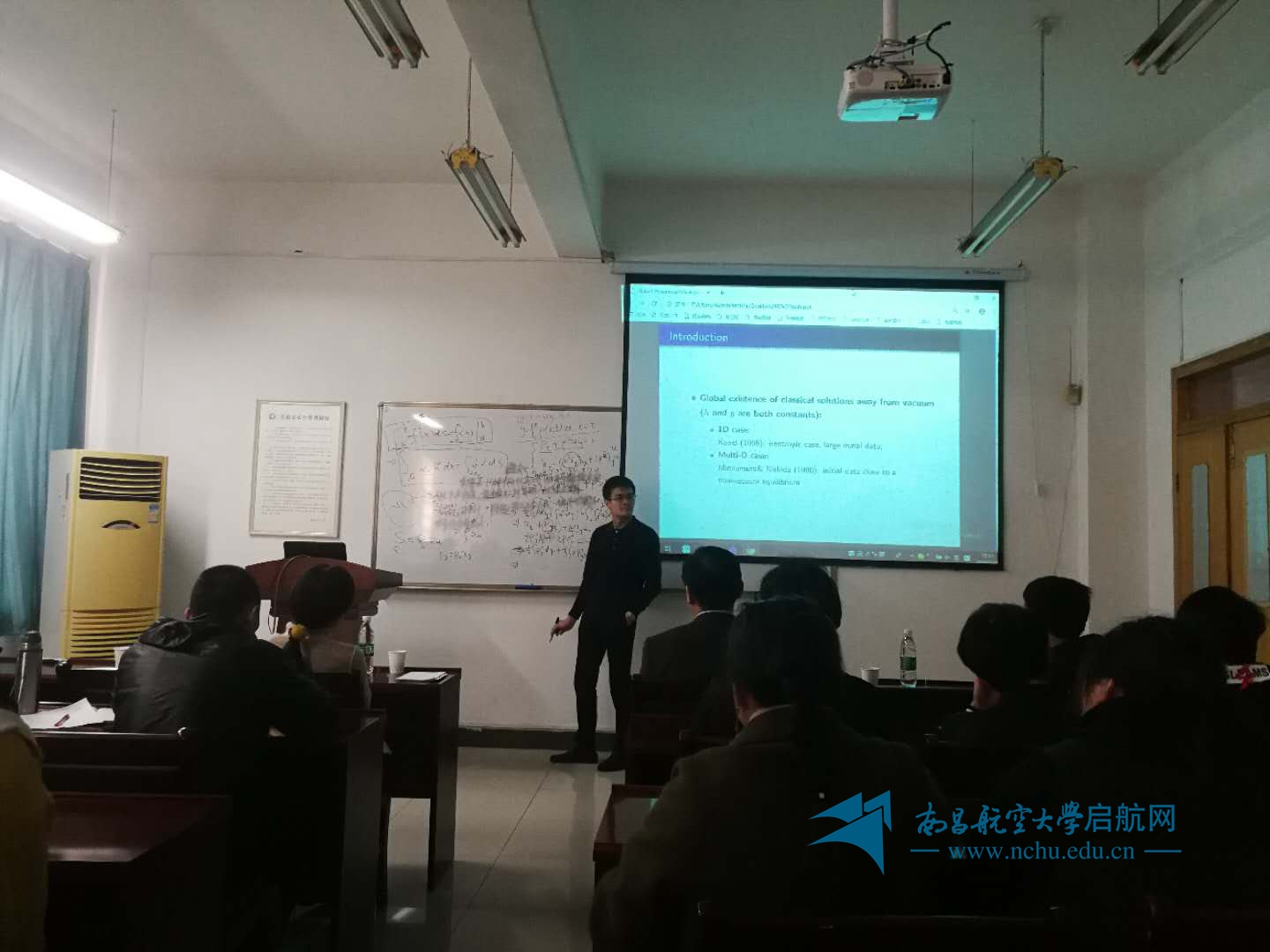 啟航網訊 2019年3月25日,國家杰出青年科技基金獲得者、中國科學院數學與系統科學研究院李競研究員在數學與信息科學學院D209教室給我院教師及學生作了一場題為“Global well-posedeness of the solutions to the compressible Navier-Stokes equations with vacuum”的學術報告。